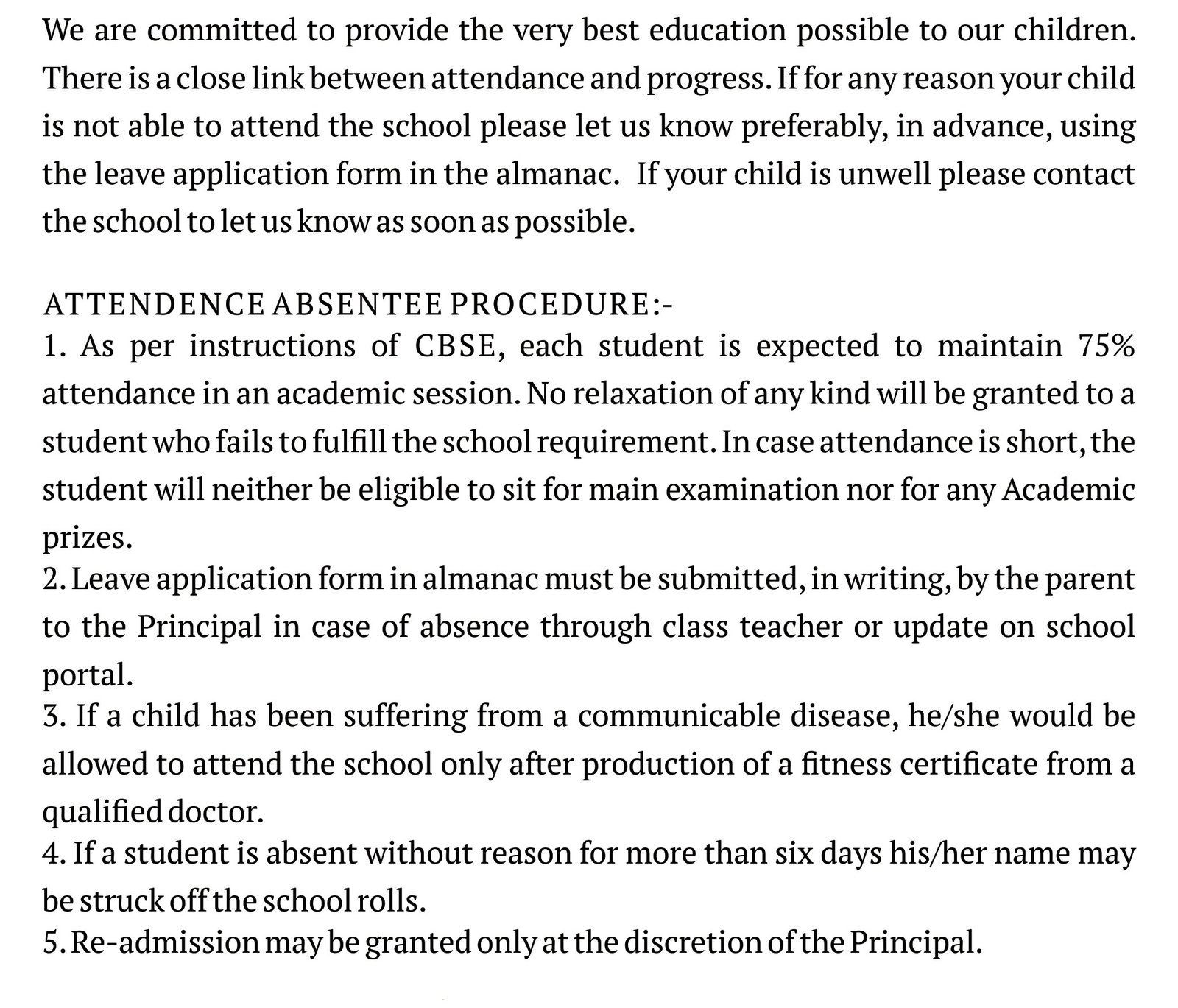 Attendance Leave Policy